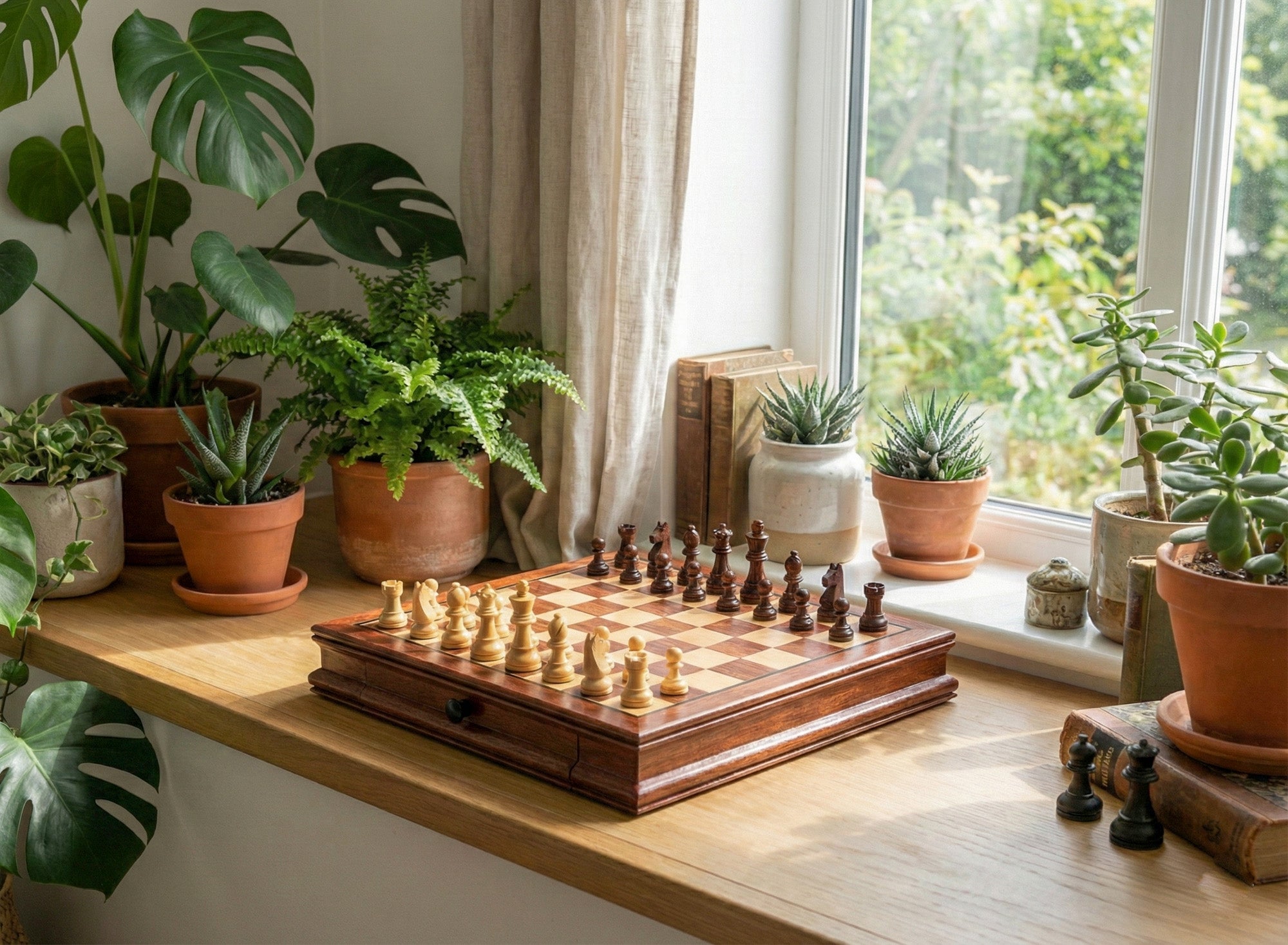 Regalo Ideal para Aficionados al Ajedrez: Con dos cajones de almacenamiento incorporados, este juego no solo es una pieza funcional sino también un objeto de colección. Es el regalo perfecto para los amantes del ajedrez, ofreciendo un tesoro que puede ser atesorado y pasado de generación en generación.