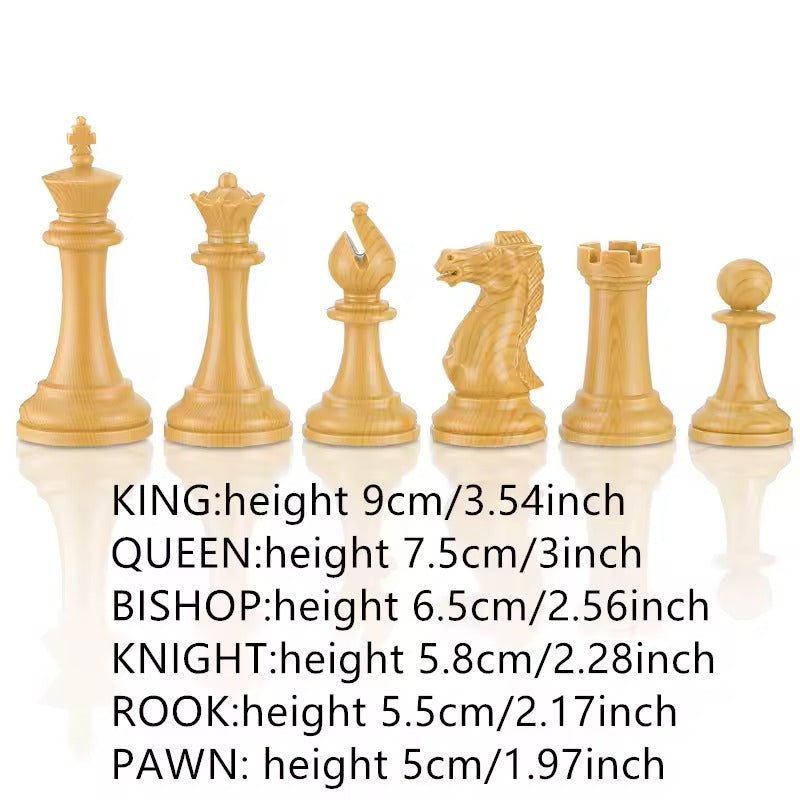 Las piezas de estilo clásico están cuidadosamente detalladas para ofrecer una excelente legibilidad en cada movimiento, ideales tanto para jugadores principiantes como para ajedrecistas experimentados. Este set es perfecto para regalar, coleccionar o elevar la presentación de cualquier espacio donde el ajedrez sea protagonista.