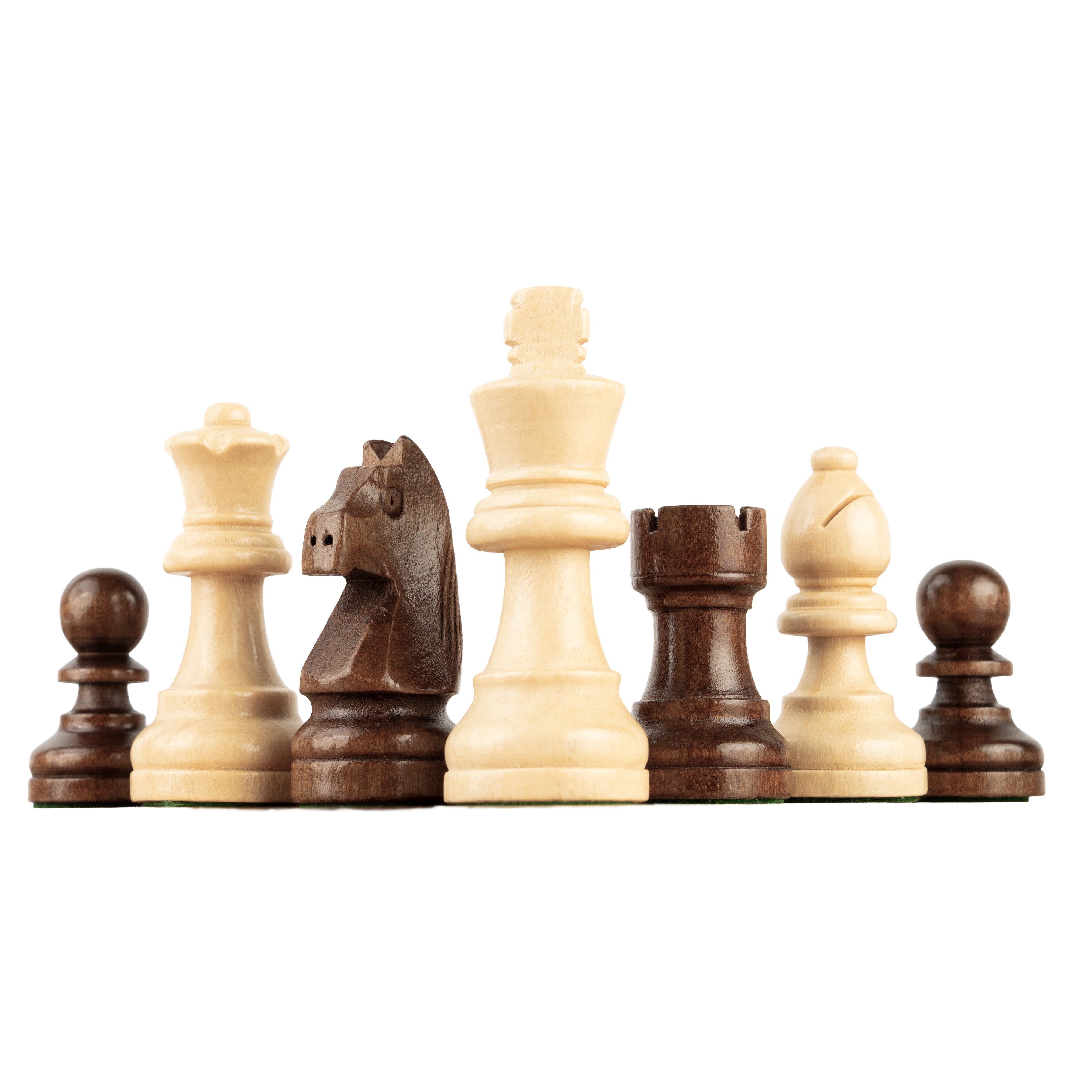 Hechos de 100% madera, estas piezas de ajedrez enriquecen cualquier tablero con su elegante diseño y excelente calidad.