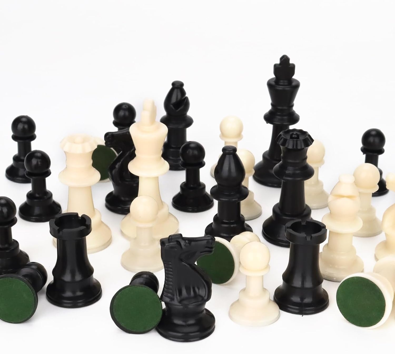 Tablero de ajedrez + 32 piezas completas (rey, reina, alfiles, caballos, torres y peones) + Bolso de transporte.